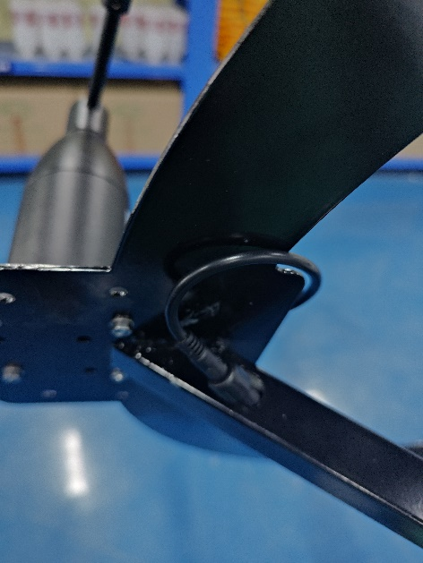 15、安裝固定電池板并穿線,將電池板線從燈桿頂端進(jìn)線孔穿進(jìn)燈桿,從控制箱出線孔(離燈桿底座1.2m)穿出,然后將電池板支架套入燈桿內(nèi),固定三個(gè)螺絲并擰緊,注意電池板朝向南(以控制箱方向?yàn)榛鶞?zhǔn))